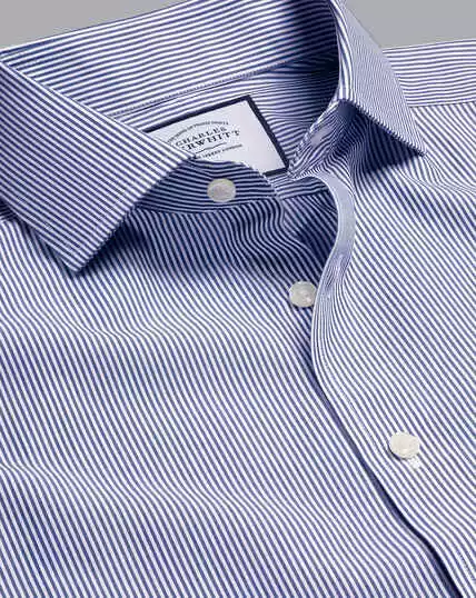 A customer favorite design, this shirt was created to add variety to your daily wardrobe. The fabric is a Bengal stripe, an easy-to-wear style in 100% cotton. A non-iron finish means you can wash, hang, and wear it with minimal fuss