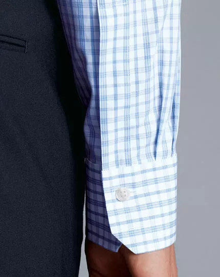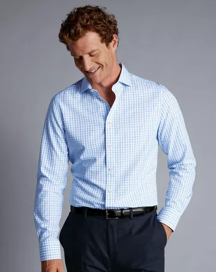 CHARLES TYRWHITT Spread Collar Non-Iron Graph Check Cutaway Shirt – Royal B