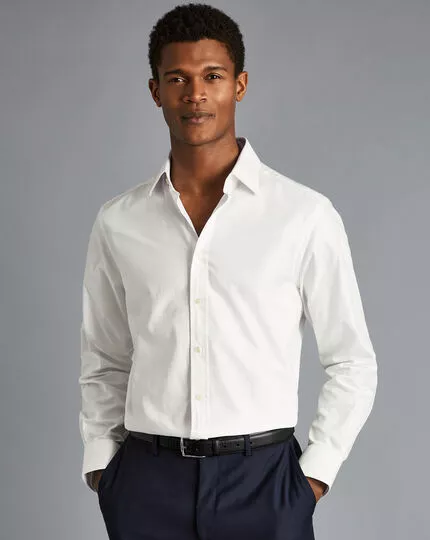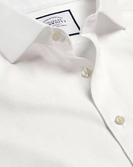 For an elevated take on the classic white shirt, we’ve combined the iconic herringbone pattern with a smooth and silky finish. Our new ivory-white tone is softer than a true, pure white, for a warmer look that goes with every suit and blazer you throw at it. It works especially well for those ‘dress to impress’ occasions. We’ve used quality 2-ply yarn for exceptional strength and durability, as well as giving the fabric a subtle sheen. To keep things effortless, we’ve added our famous non-iron finish. In short, this is your new swish go-to.