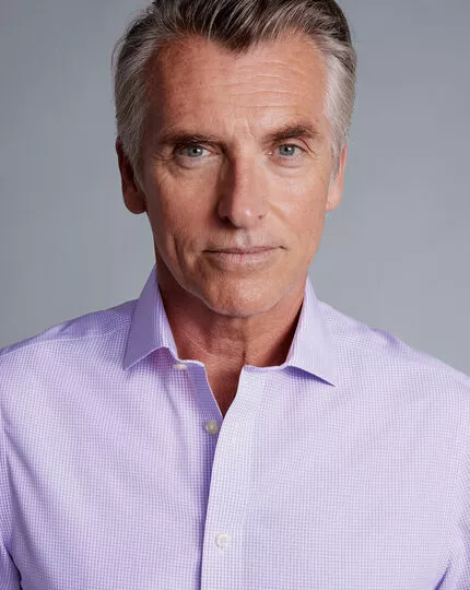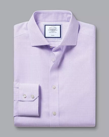 CHARLES TYRWHITT Spread Collar Non-Iron Mini Gingham Check Shirt – Mauve P
