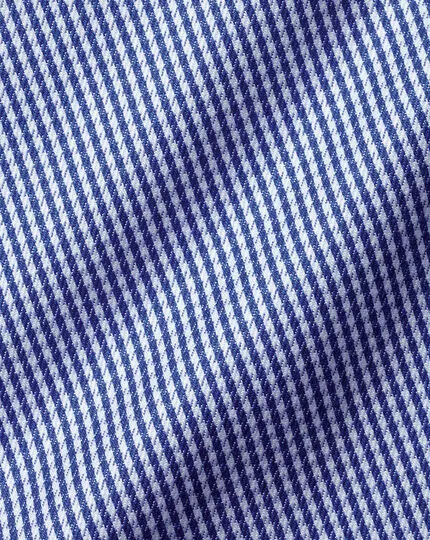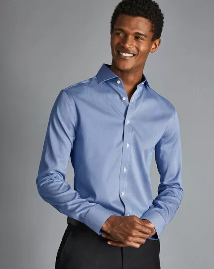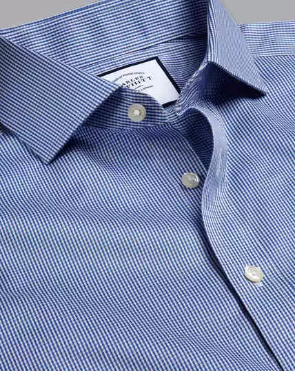 It’s not hard to see why this shirt has a spot on our bestseller list. The puppytooth pattern in eye-catching royal blue makes this an easy way to bring refinement to formal looks. We’ve given this style a non-iron finish, so you can simply wash, hang, and reach for it when needed. A smart cutaway collar enhances the contemporary, streamlined shape. Use the complimentary brass collar stiffeners to keep your look neat.