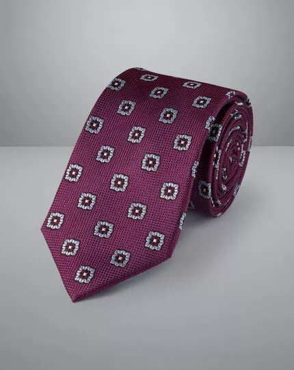 CHARLES TYRWHITT Stain Resistant Floral Silk Tie – Grape P
