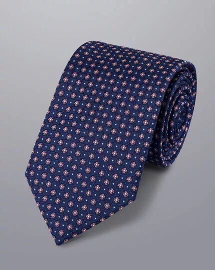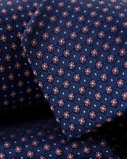 While you’d prefer not to get coffee on your tie, at least our silk can handle spillages. Its high-tech treatment repels liquid, minimising stains (and stress). To make sure this patterned option always looks its best, we’ve stitched in a hidden keeper loop to hold the tail in place. A second loop allows the fabric to fall back into shape after knotting. The result: an impeccable look that lasts all day.