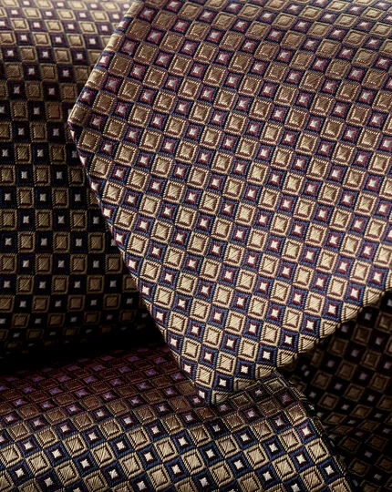 CHARLES TYRWHITT Stain Resistant Patterned Silk Tie – Gold & Wine R
