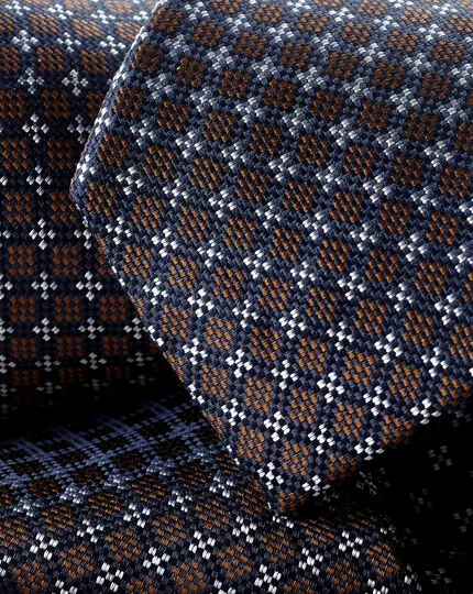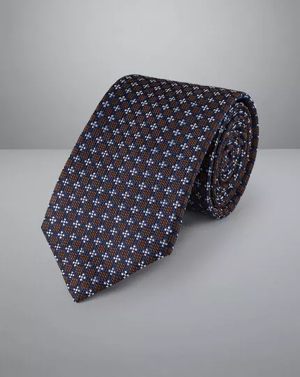 While you’d prefer not to get coffee on your tie, at least our silk can handle spillages. Its high-tech treatment repels liquid, minimising stains (and stress). To make sure this patterned option always looks its best, we’ve stitched in a hidden keeper loop to hold the tail in place. A second loop allows the fabric to fall back into shape after knotting. The result: an impeccable look that lasts all day.