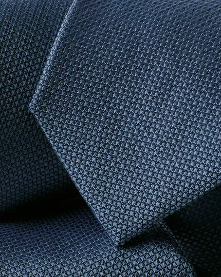 We’ve chosen pure silk for our slim tie, to combine durability with a refined sheen. Thanks to our stain-resistant finish, it has another benefit too – accidental drips run straight off the fabric’s surface. Expertly hand-finished, this style looks sharp all day, every day. A keeper loop holds the tail out of sight and there’s a discreet recovery loop inside. This ensures a neat appearance when your tie’s knotted and pulls the fabric back into shape afterwards.Â