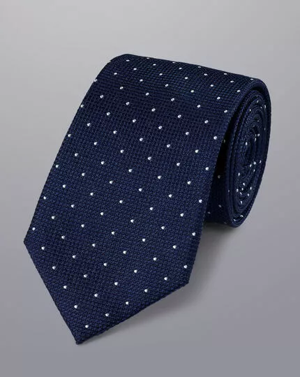 CHARLES TYRWHITT Stain Resistant Spot Silk Tie – Petrol & Light B