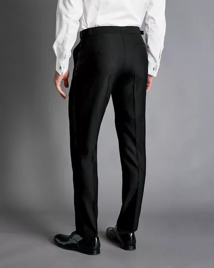 When it comes to formal tailoring, luxury is high on our priority list – and our dinner suit is no exception. Showcasing a reinvigorated design, we’ve used Super 120s Woolmark-certified Merino wool for breathability and shape retention. You’ll appreciate the classic details, like the superfine ottoman rib trim and satin buttons. Dinner suits should fit impeccably. These traditional black trousers are half-lined to the knee, preventing them from gathering up and ensuring you stay comfortable. Taped hems give you a neat finish, while angled pockets ensure your lines stay sleek.