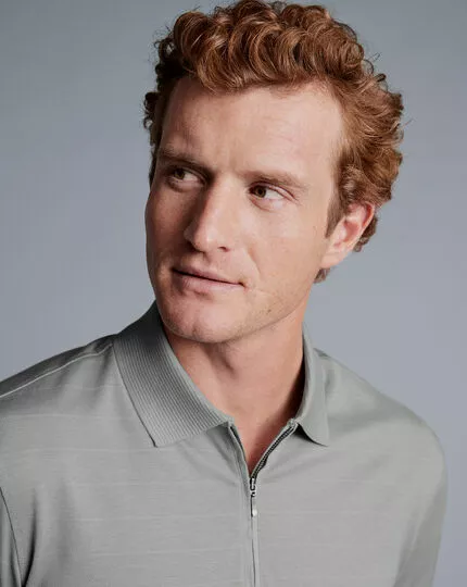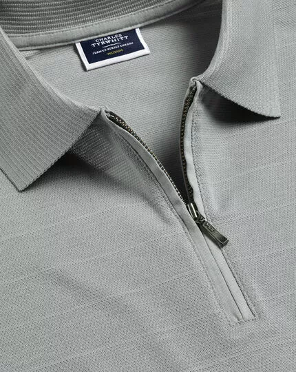 CHARLES TYRWHITT Tyrwhitt Cool Zip-Neck Polo – Light Grey