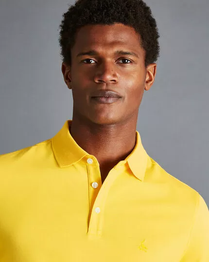 Comfort is a top priority – the fabric blends breathable cotton with a hint of stretch, so movement is easy. The superior cotton yarns are extra-durable, making this a style you can return to again and again. It’s the thoughtful flourishes – like the print tucked under the collar and embroidered lapwing on the chest – that make this polo a cut above the norm.