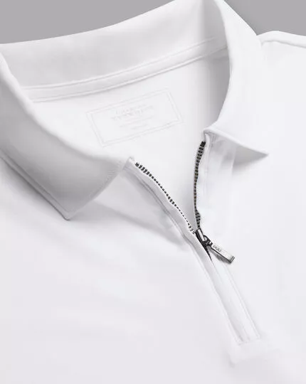 CHARLES TYRWHITT Zip-Neck Jersey Polo – Wh