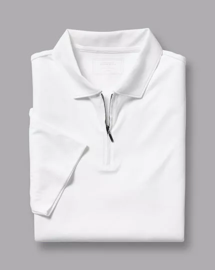 CHARLES TYRWHITT Zip-Neck Jersey Polo - Wh -Charles Tyrwhitt Shop JEP0378WHT FOLD