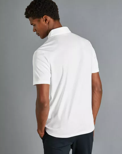 CHARLES TYRWHITT Zip-Neck Jersey Polo - Wh -Charles Tyrwhitt Shop JEP0378WHT MODEL BACK