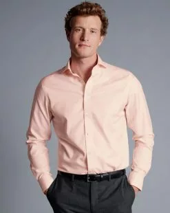 CHARLES TYRWHITT Spread Collar Non-Iron Twill Shirt – Peach