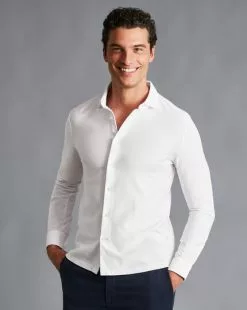 CHARLES TYRWHITT Twill Jersey Shirt – Wh