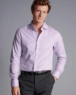 CHARLES TYRWHITT Semi-Spread Collar Egyptian Cotton Berkshire Weave Shirt – Pink