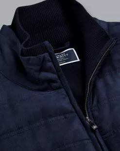 CHARLES TYRWHITT Alcantara Funnel Neck Knitted Jacket – Navy