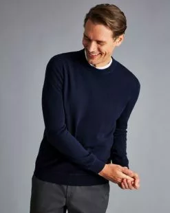 CHARLES TYRWHITT Merino Cashmere Crew Neck Sweater – Navy
