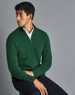CHARLES TYRWHITT Cashmere Zip Neck Sweater – Dark Green