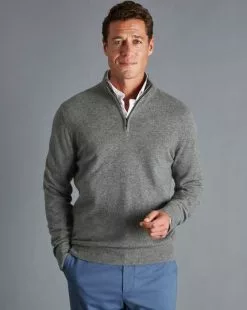 CHARLES TYRWHITT Cashmere Zip Neck Sweater – Grey