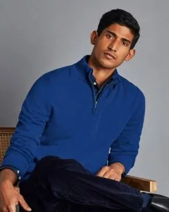 CHARLES TYRWHITT Cashmere Zip Neck Sweater – Royal B
