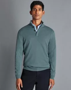 CHARLES TYRWHITT Merino Cashmere Button Neck Sweater – Pale Teal Green