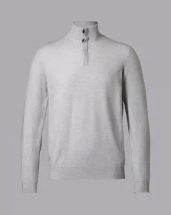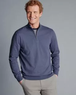 CHARLES TYRWHITT Combed Cotton Zip Neck Sweater – Heather B