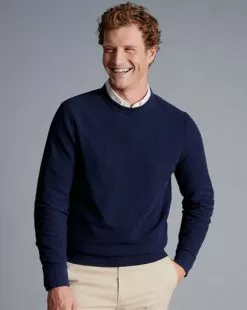 CHARLES TYRWHITT Combed Cotton Crew Neck Sweater – Dark Navy
