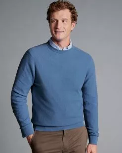 CHARLES TYRWHITT Merino Cashmere Crew Neck Sweater – Indigo B