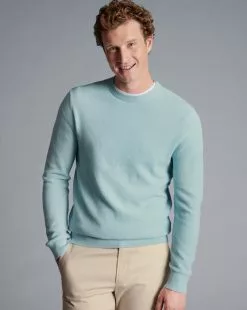 CHARLES TYRWHITT Cotton Merino Waffle Crew Neck – Ocean B
