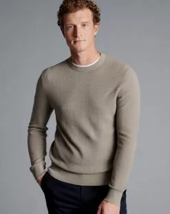 CHARLES TYRWHITT Cotton Merino Waffle Crew Neck – Spearmin