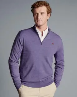 CHARLES TYRWHITT England Rugby Merino Zip-Neck Sweater – Lilac P