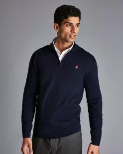 CHARLES TYRWHITT England Rugby Red Rose Merino Zip Neck Sweater – Navy