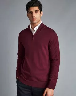 CHARLES TYRWHITT Merino Zip Neck Sweater – Burgundy