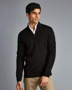 CHARLES TYRWHITT Merino Zip Neck Sweater – Black