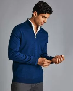 CHARLES TYRWHITT Merino Zip Neck Sweater – Royal B