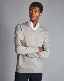 CHARLES TYRWHITT Merino V-Neck Sweater – Silv