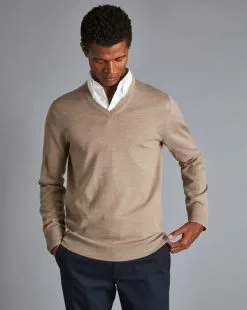 CHARLES TYRWHITT Merino V-Neck Sweater – Oatm