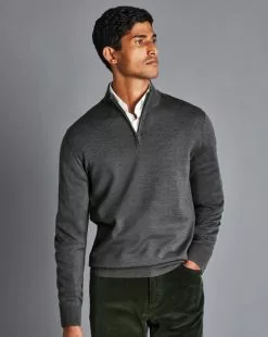 CHARLES TYRWHITT Merino Zip Neck Sweater – Charcoal Grey